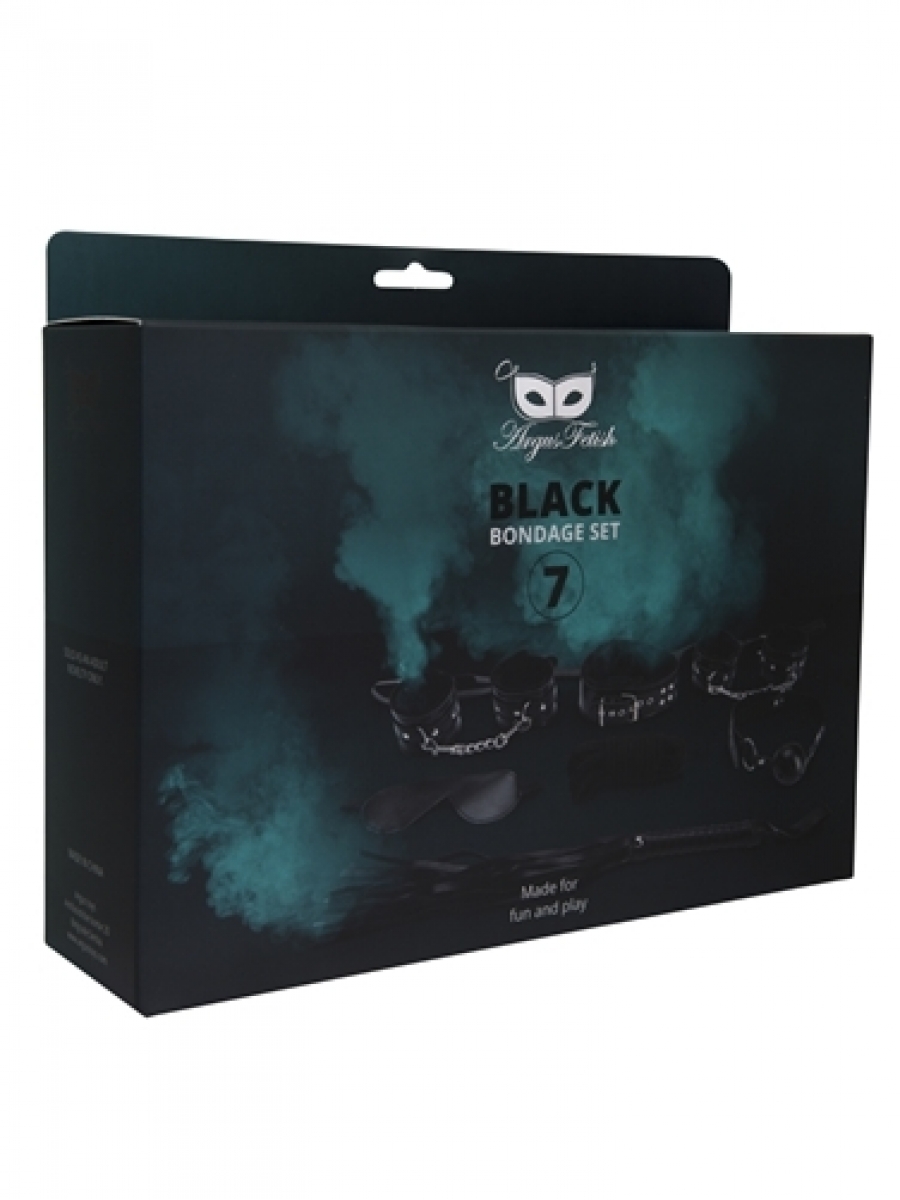 Komplet sadrži lisice za ruke i noge,povodac,bal gag,bič,masku i kanap za vezivanje.Svi delovi koji služe za vezivanje su sa unutrašnje strane obloženi plišom tako da je nošenje istih veoma olakšano i prijatno.Idealan poklon za sado mazo igre sa partnerom