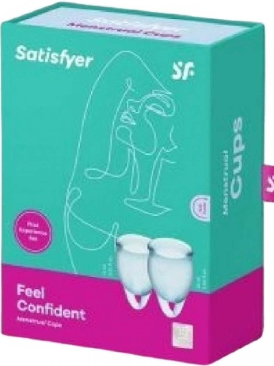 Komplet za menstrualne čašice Satisfier Feel Confident u tamno plavoj boji. Ove zabavno dizajnirane menstrualne čaše dostupne su u praktičnom setu od dve. Imaju kapacitet od 15 i 20 ml, tako da su savršeni za dane većeg ili lakšeg protoka. Medicinski silikon ih čini higijenskim i lakim za umetanje. Zahvaljujući svom fleksibilnom materijalu, savršeno se prilagođavaju i pružaju sigurnu i higijensku zaštitu do 12 sati.Dužina je 6cm, a prečnik je 3,5cm.