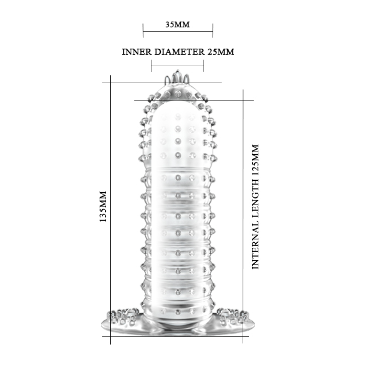Dobra silikonska navlaka za penis sa izraženim mekanim bodljicama za stimulaciju.Dužina oko 13,5cm a širine oko 3,5cm.Lako je rastegljiva da bi se lakše stavila na penis.Može se koristiti isključivo sa vodenim lubrikantom.