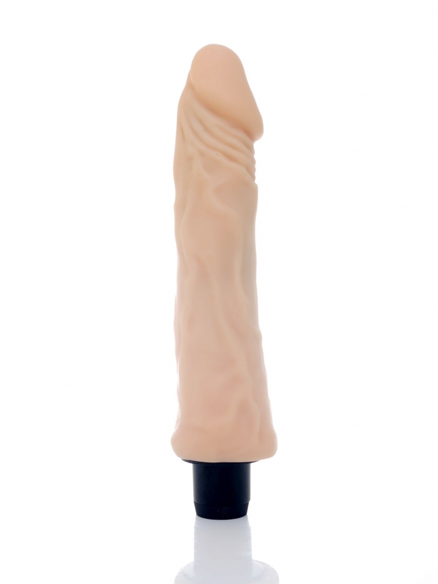 Multibrzinski vibrator idealnih proporcija i realističnog izgleda će Vam pružiti ultimativnu senzaciju.Materijal je TPR i veoma je mekan,prijatan i pre svega savitljiv,tako da možete da se prepustite uživanjima.Poseduje jedan motor i pokreće se preko potenciometra tako da možete da kontrolišete jačinu vibracije u svakom momentu.Baterije koje ovaj model koristi su 2xAA.